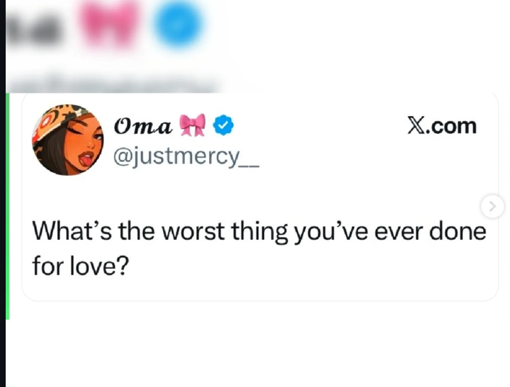 An X user has sparked reactions after asking a simple question: “What’s the worst thing you’ve ever done for love?”