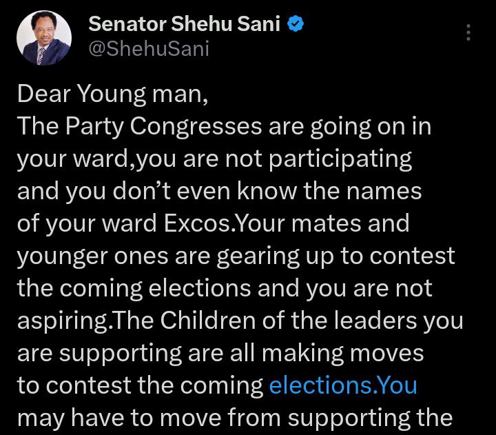 Sani’s statement was widely interpreted as a call for increased political awareness, especially at the ward level, where party structures are formed and decisions about future candidates often begin.