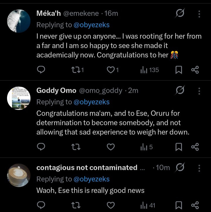 Ecstatic by the achievement recorded by the young girl, the former minister for Education and Benefactor, Oby Ezekwesili took to her official X handle to share the joyful moment with his massive followers.