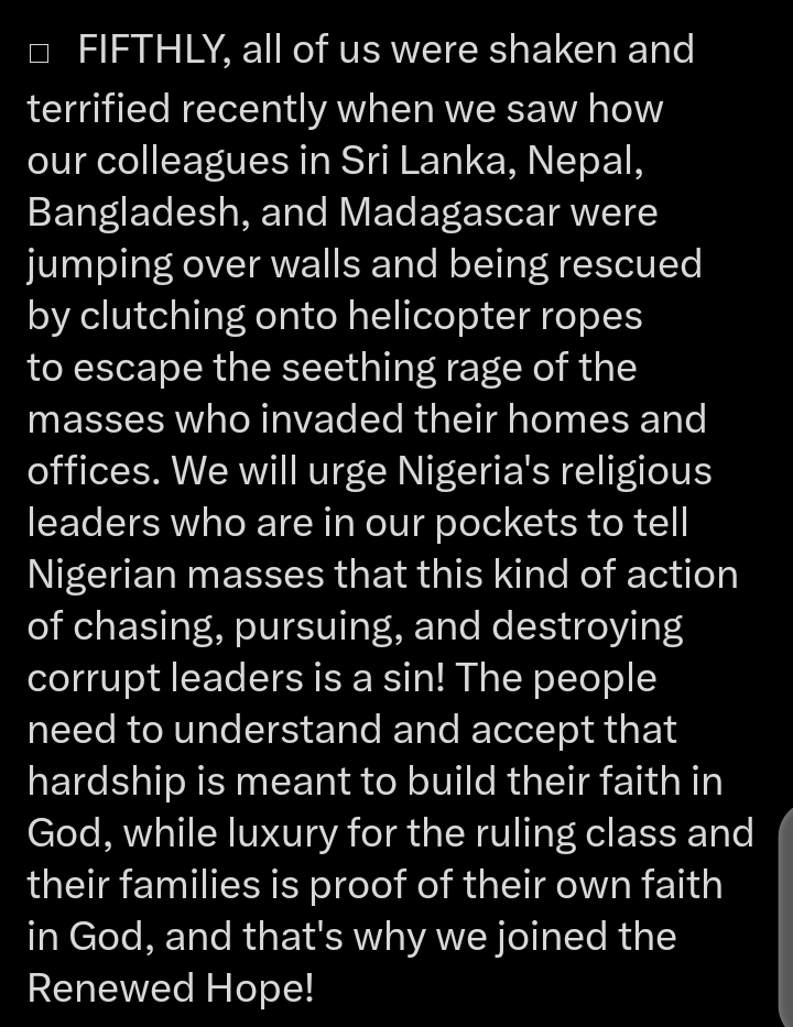 In the report that the former governor of Kaduna state shared on his page, it was stated that corrupt politicians were jumping over walls during protests in countries like Nepal, Madagascar, Sri Lanka and others.