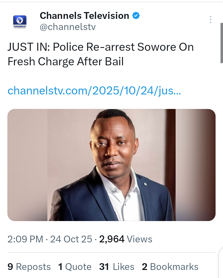 This announcement was contained in a report that was published on the official X handle of CHANNELS TV on Friday, October 24, 2025.