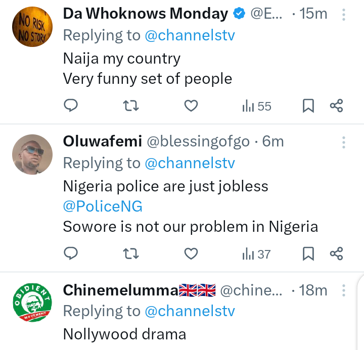 There have been several reactions from social media users after it was announced that the Nigeria Police Force, NPF, has rearrested human rights activist and former presidential candidate, Omoyele Sowore.