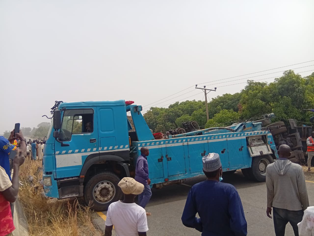 The trailer was on its way to Maiduguri, Borno State, conveying soya beans with five occupants including the driver.