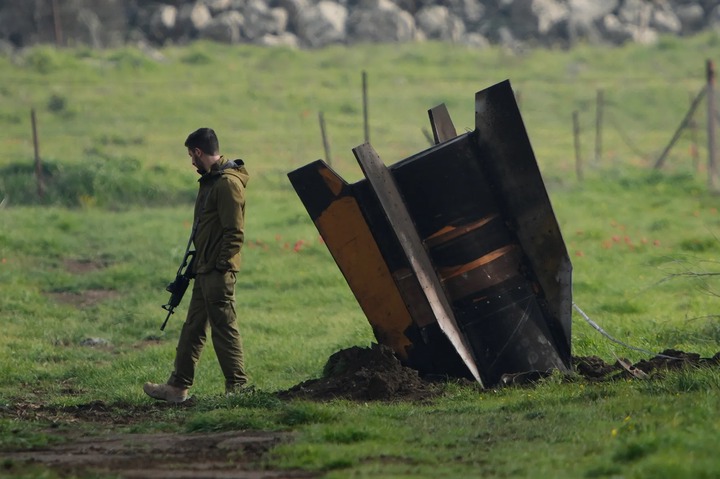 A fragment of a missile fired from Iran and intercepted by Israeli air defenses in an open field in the Israeli-controlled Golan Heights, on March 19. Photographer: Ohad Zwigenberg/AP Photo