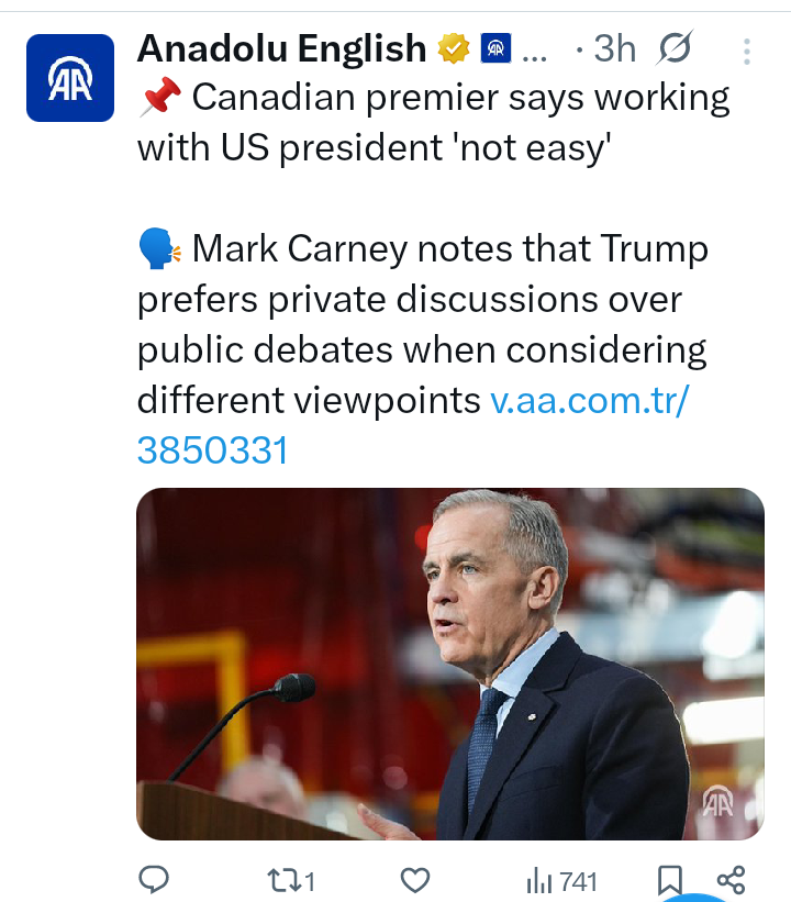 According to a report made by Anadolu English on Thursday, 5 March, 2026, Canadian Prime Minister Mark Carney while speaking at the Australian think-tank Lowy Institute, acknowledged Trump’s political talents while exposing the strain that has developed between longtime allies over tariffs and trade disputes.