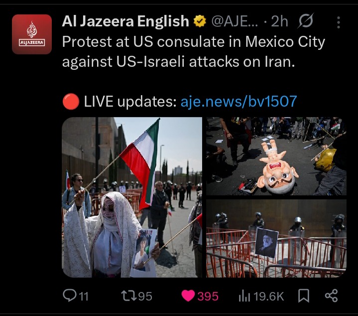 BREAKING: Protest Erupts at US Consulate in Mexico City Over US–Israeli Attacks on Iran