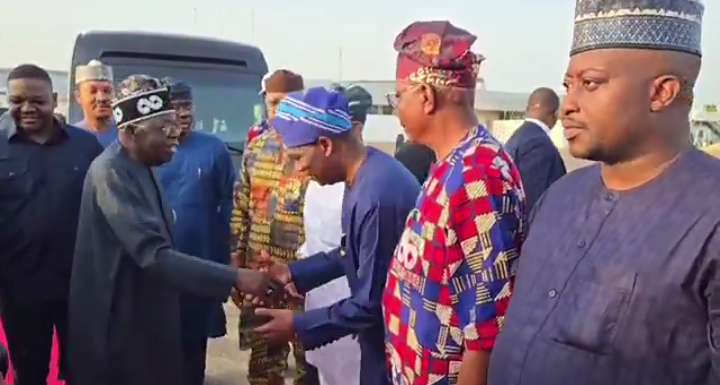 BREAKING: Reactions As Ogun Gov, Others Were Seen Waiting At Lagos Airport To Shake Tinubu Before He Departs