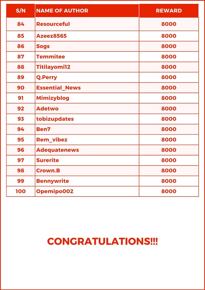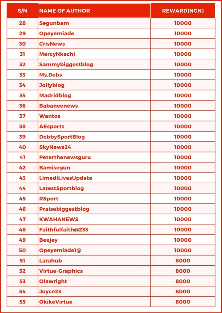Authors were required to simply top the Most Published challenge for a N50,000 cash reward;