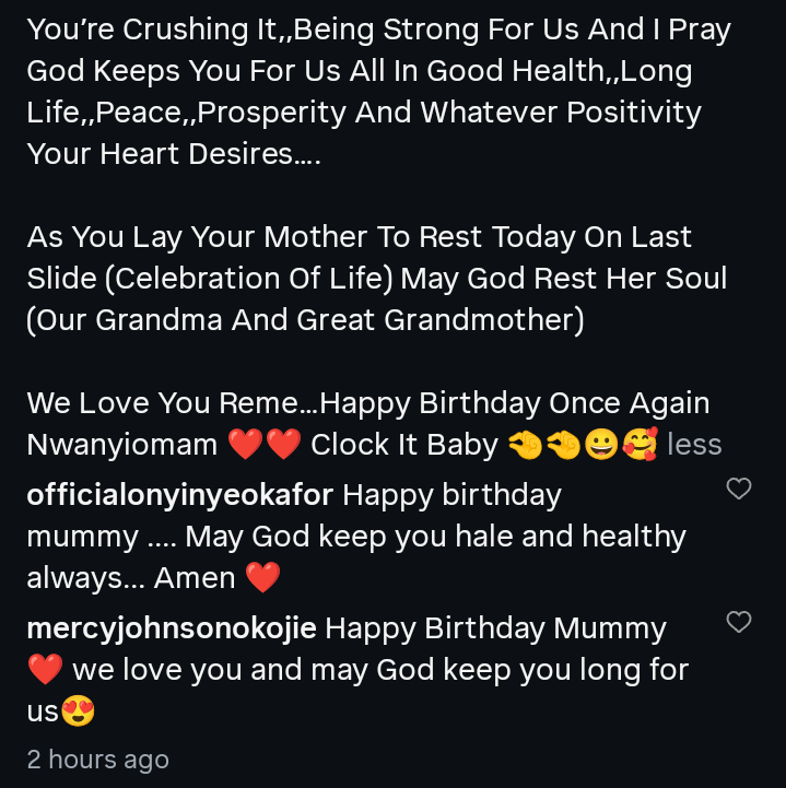 Happy birthday to Late Junior Pope’s mother.