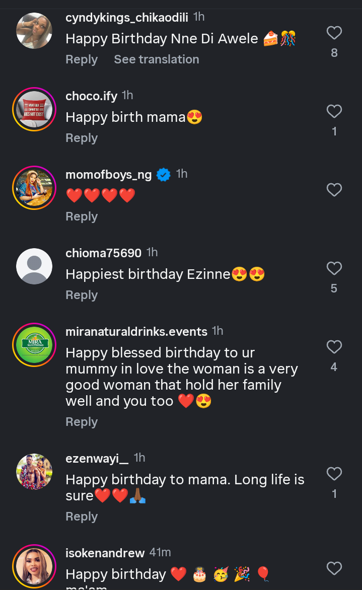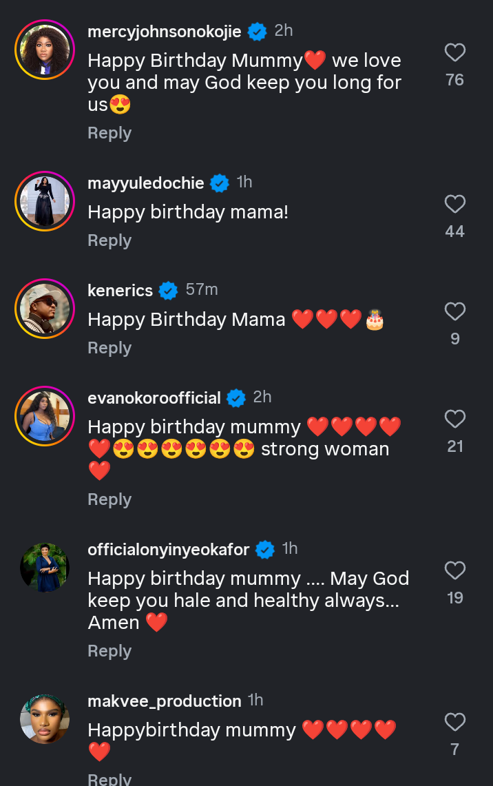 Top celebrities like Mercy Johnson, Ken Erics, and many others sent love emojis.